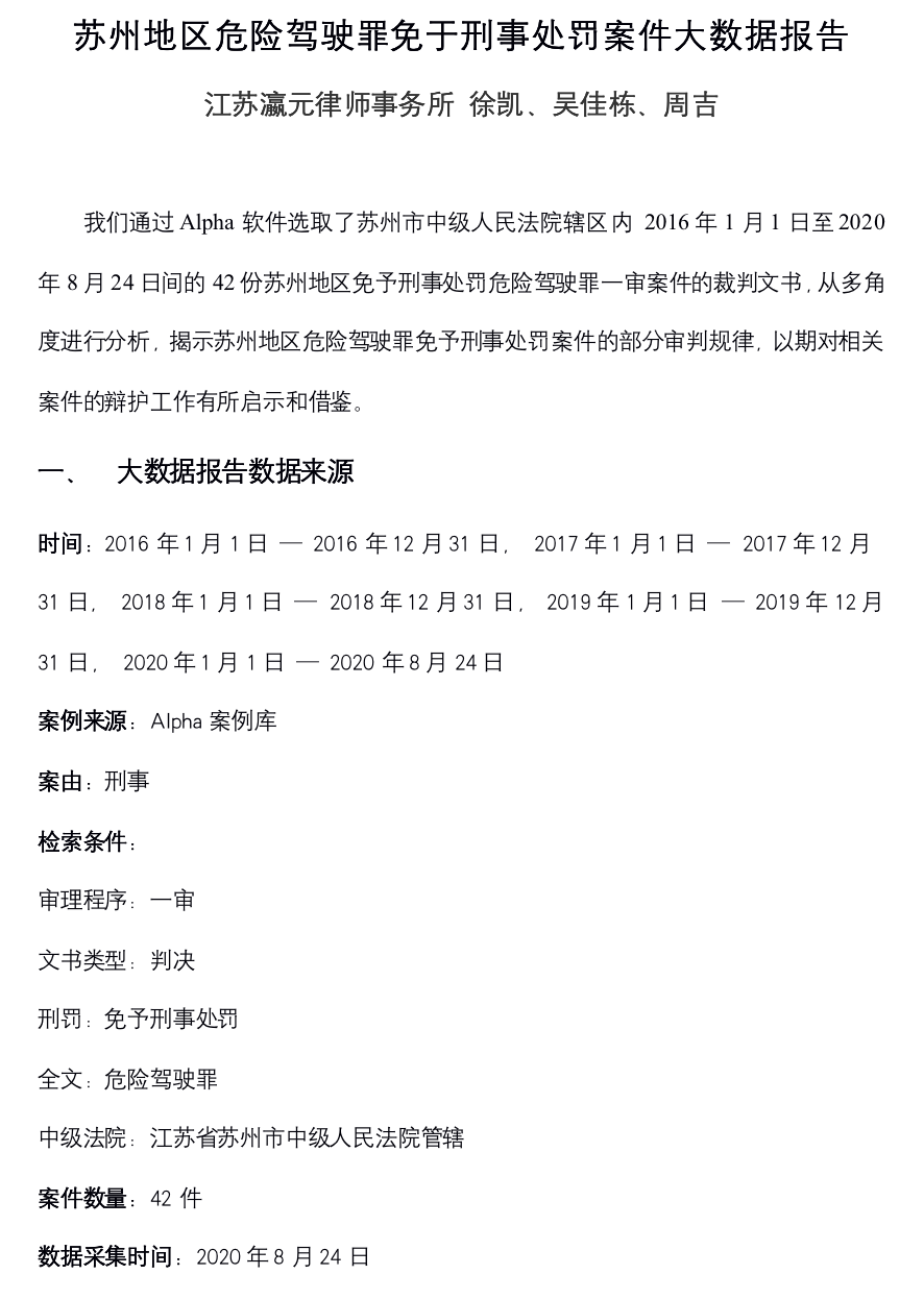 苏州地区危险驾驶罪免于刑事处罚案件大数据报告