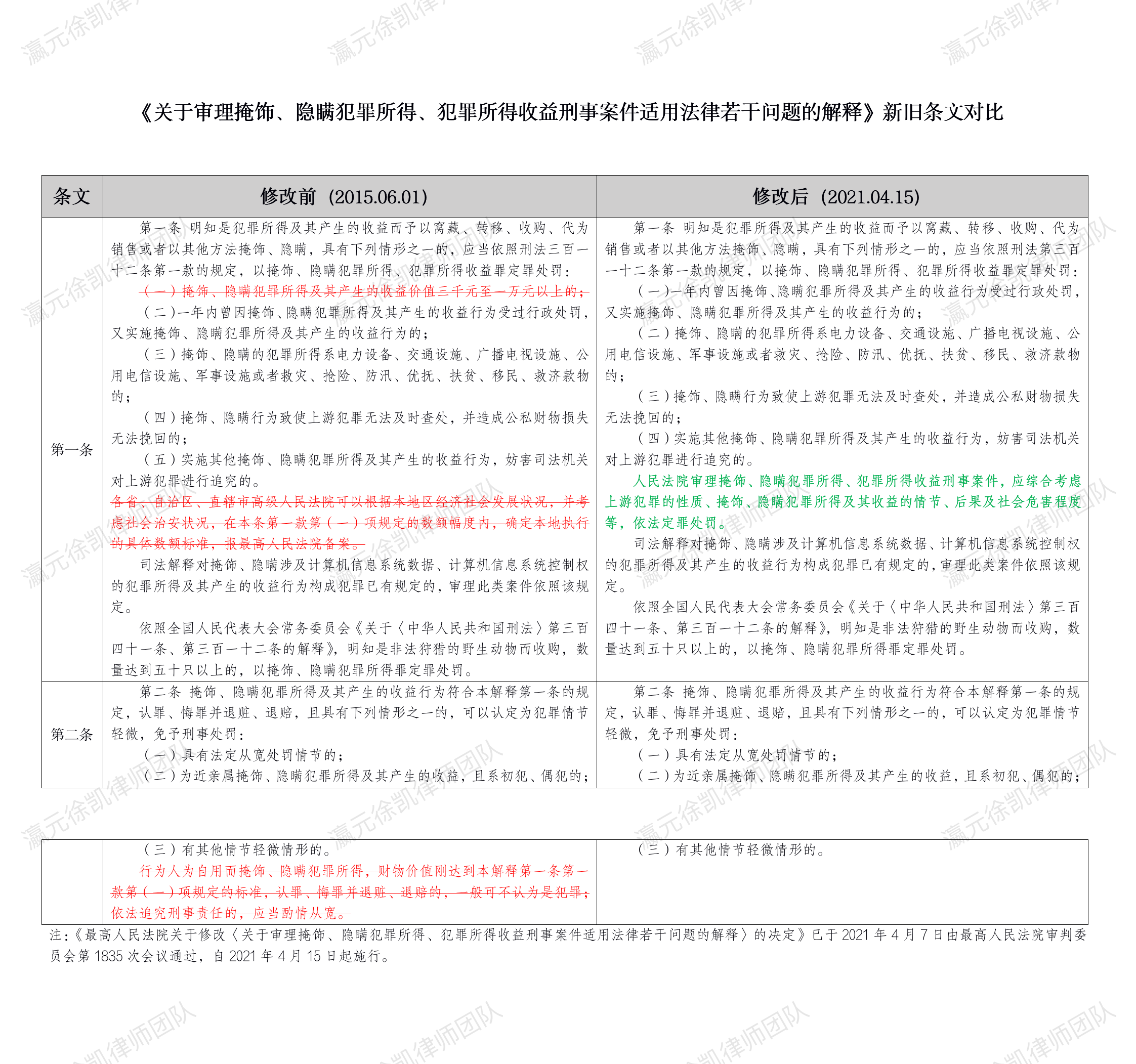 《关于审理掩饰、隐瞒犯罪所得、犯罪所得收益刑事案件适用法律若干问题的解释》新旧条文对比
